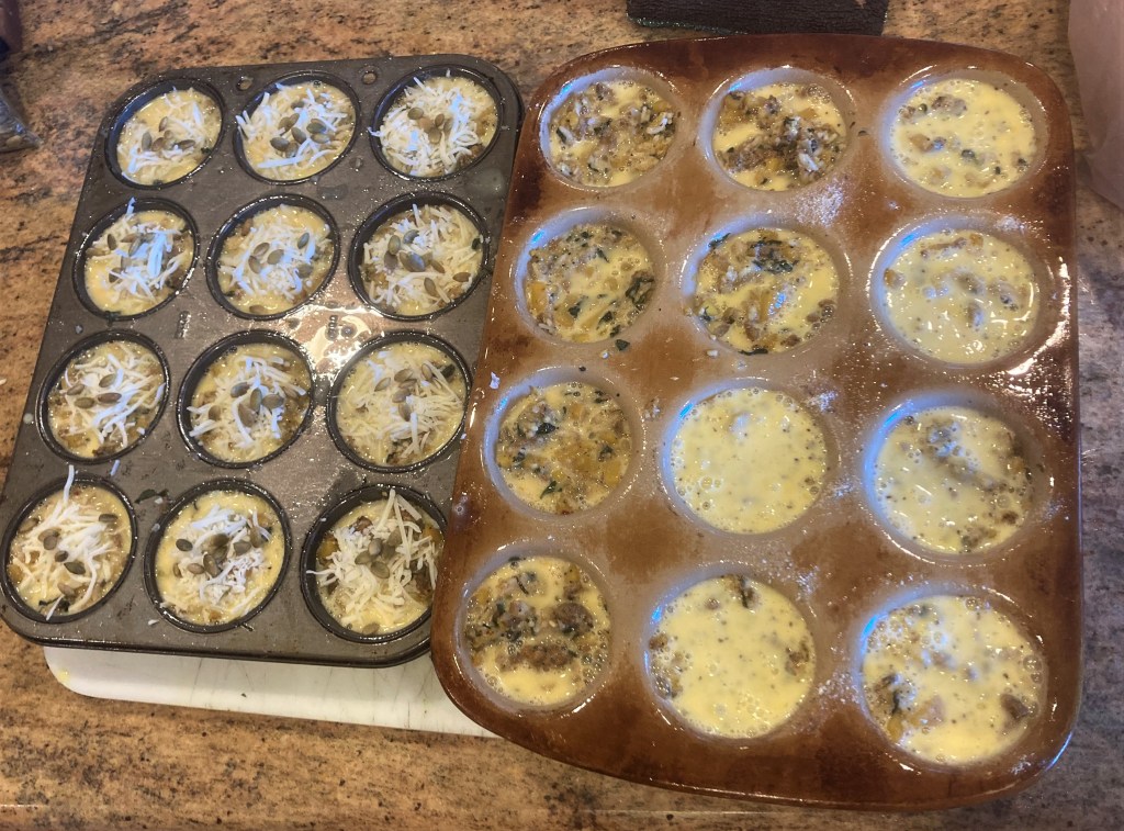 Sprinkle the bottom of the muffin pan with bread crumbs, then fill the cups about 3/4 full with the filling.