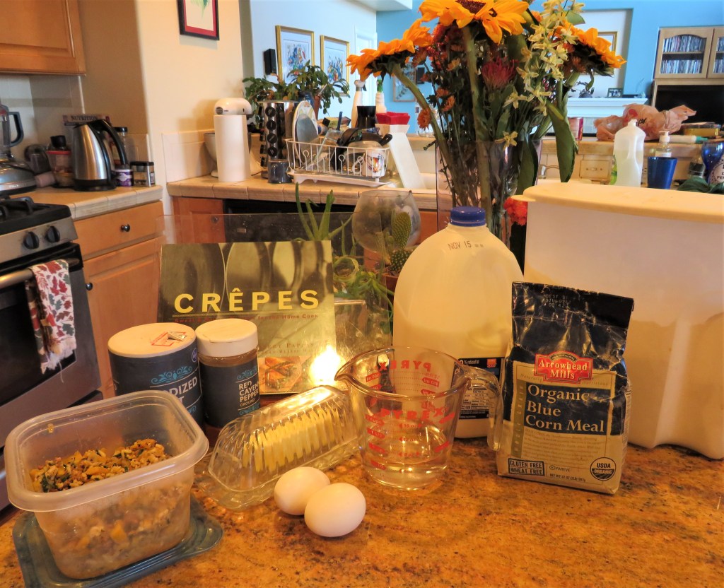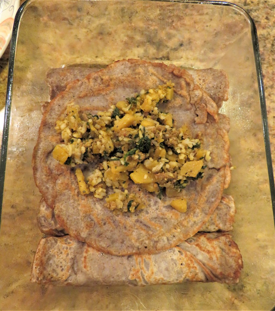 I decided blue corn crepes would go well with the pumpkin and sausage and would make it a bit more rustic.