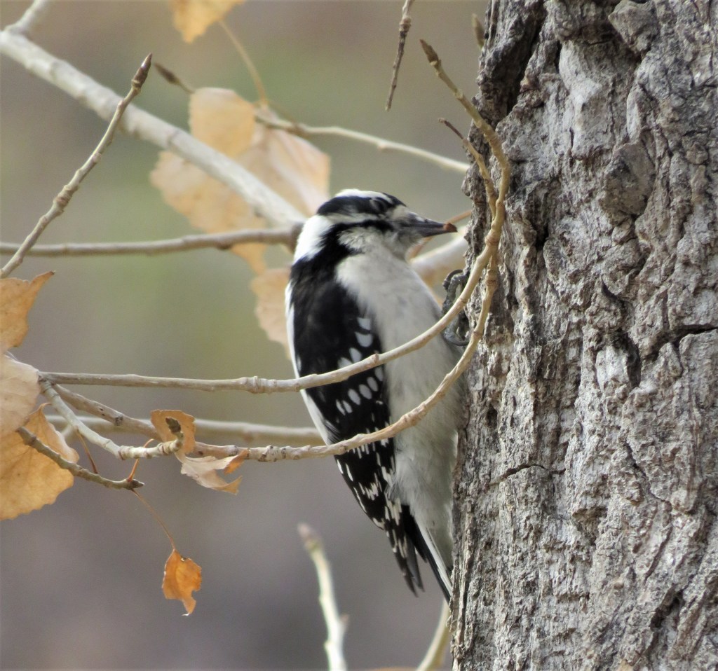 Everything is in the process of change right now. The leaves that are left are changing their colors once again. The temperature is changing, and now it is a little cooler and crisper than it was just a few days ago. The animals are changing too. I have lived and walked around my lakes for almost 15 years now, and I discovered a new friend today, or at least new to me. Today was the first day I have seen one of these. This is a Downey Woodpecker.