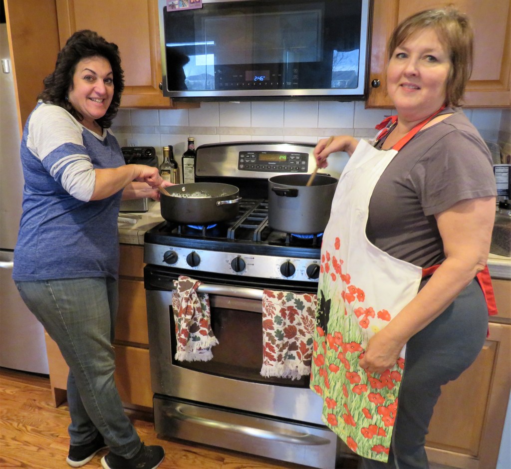 And the process begins. Laura and Lauren are at the stove, stirring their pots.