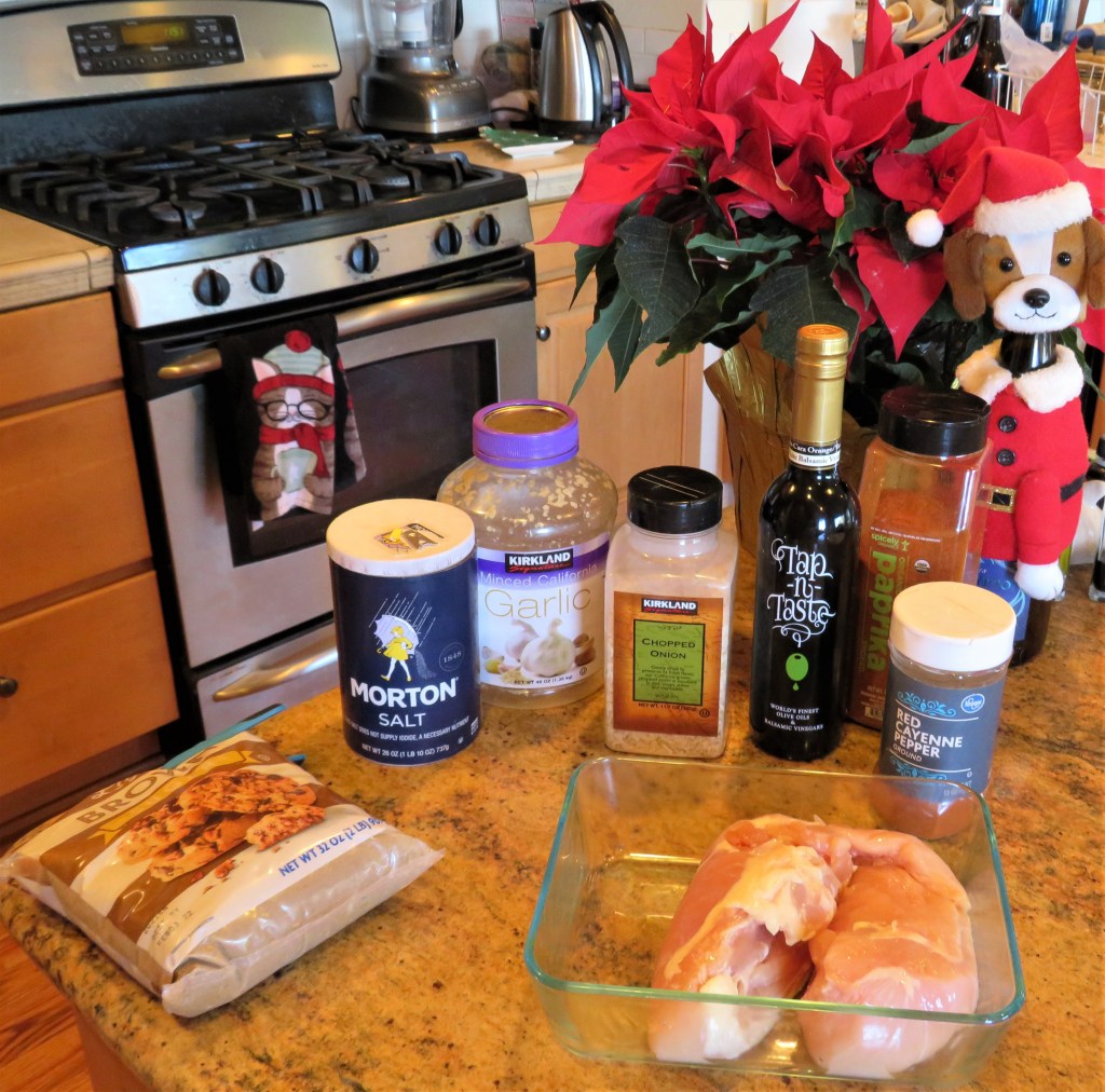 4 lbs of chicken – you can use any kind of chicken you like. I used boneless breasts.
