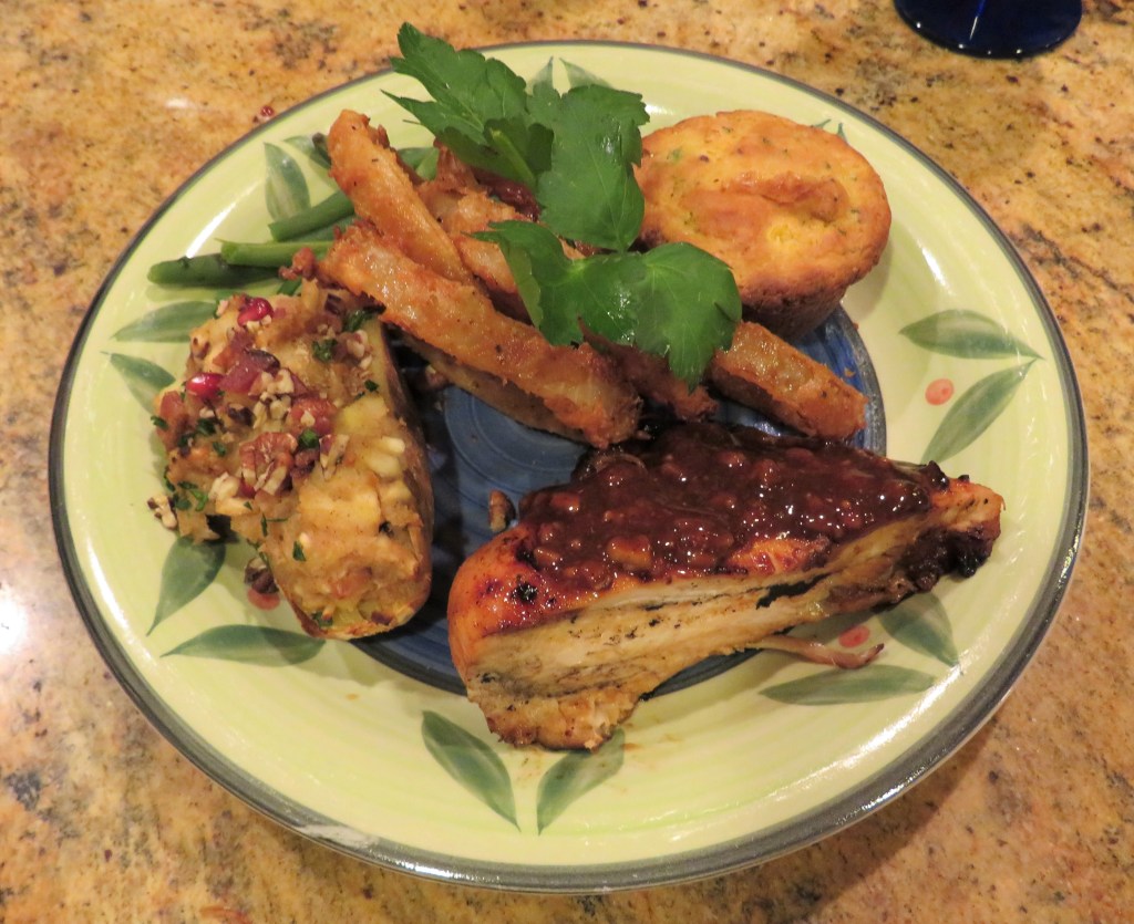 Last night’s dinner was most definitely filled with a bunch of different Southern comfort foods. It was filled with a tangy-smoky BBQ chicken, loaded yams, green beans, buttermilk onion rings and my bacon and green onion corn muffins. Bacon and Green Onion Corn Muffins D-E-L-I-C-I-O-U-S!!!!!