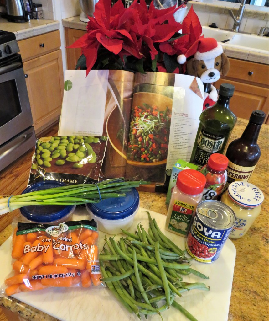 This time we made a Christmas Three-bean salad and some Polish sausages to go with the salad. This three bean salad is a new twist to the traditional three bean salad. It was tangy and zippy and full of color and flavor. I like this new salad so much better than than traditional version.