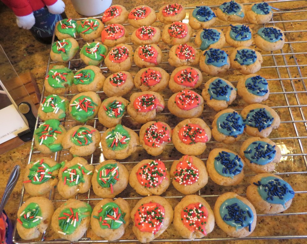 The first batch of Christmas cookies is a batch of colorful thumbprint cookies.