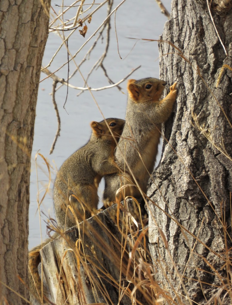 I see squirrels all the time, but rarely do I see two together having so much fun with each other.