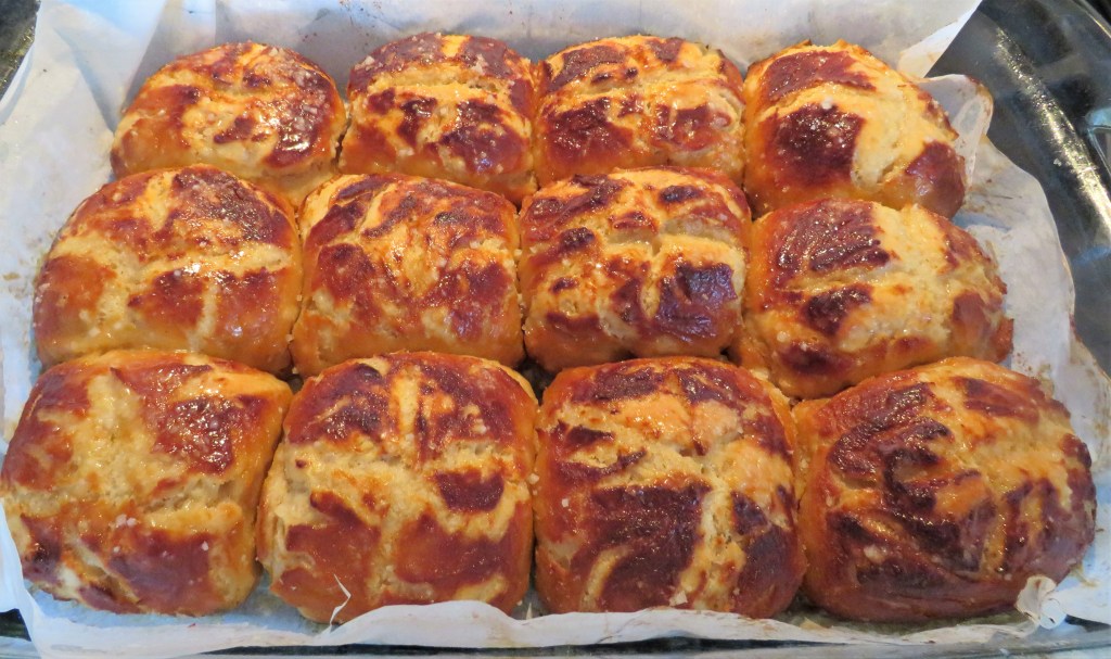 Larry is German, though he and his family never knew about this, but one of the German traditions is to eat pretzels on New Year’s Day. Larry and I have been eating pretzels as well as black-eyed peas on New Year’s Day for quite a few years now. Sometimes I make traditional pretzels and sometimes I make pretzel bread. This year I made pretzel buns.
