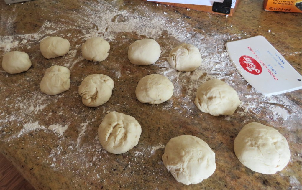 When the dough is ready, cut the dough ball into 3, and then divide each 1/3 into 4 and roll it into twelve dough balls. Roll them lightly in your hands until they form into a ball.
