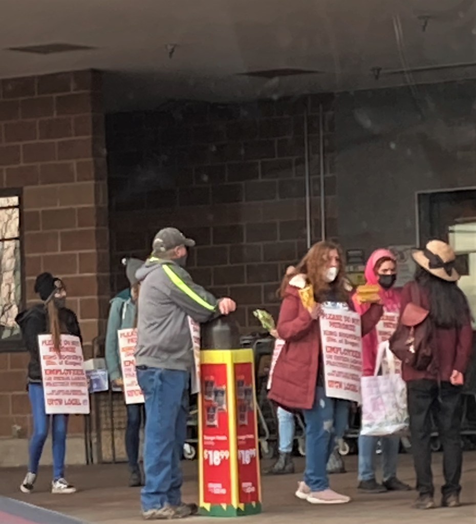 King Soopers, is one of our major grocery chains here. Their parent company is Kroger’s. Many of our King Soopers Grocery stores went on strike yesterday at 5:00 AM. Many stores are franchises and they did not go on strike. However the ones closest to my house are on strike and the picketers are marching in front of the stores. So far, there are at least 77 stores that are striking. They are planning to be on strike for at least 3 weeks.