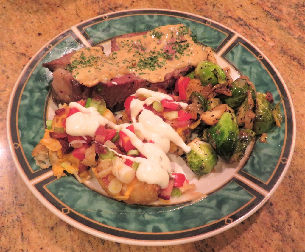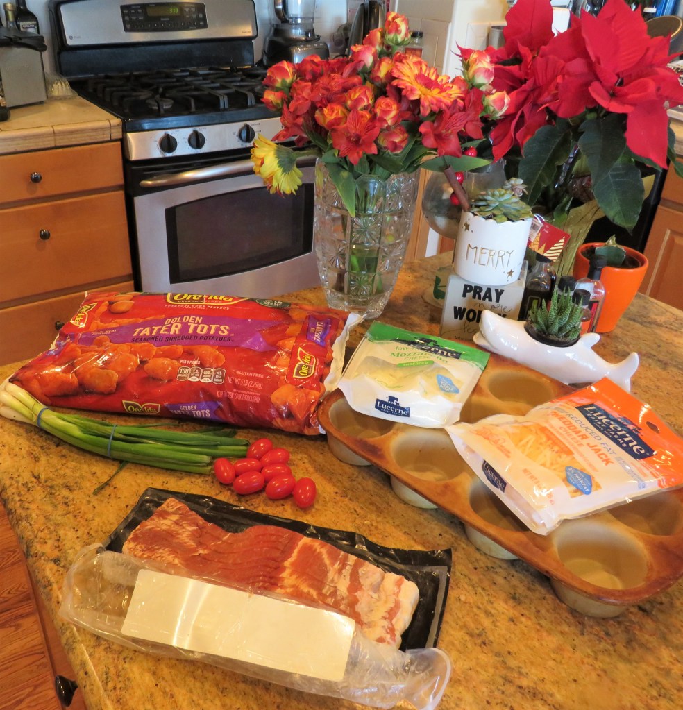 We had a very oddly paired meal this time around. I was making these as a trial to see how easy they would be for the kids, plus I was using up some leftovers. Larry and I had both bought a bunch of Brussels sprouts, so I had those to use as well. It all worked, but not a combination I would normally do or do on a regular basis. We had prime rib with a hot mustard cream sauce which was delicious, Brussels sprouts with apples, bacon, shallots and apples, which was also very good, and then the loaded tater tots. Sometimes you just have to roll with what you’ve got. You just never know what is going to happen when you play with your food. That’s why it is called playing. 🙂