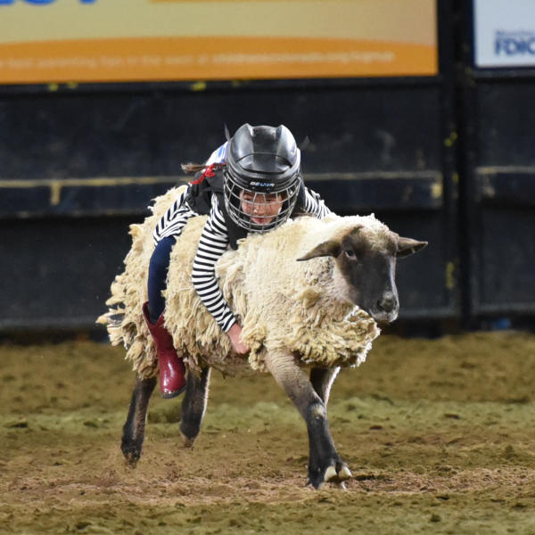 Mutton Busting. Two of our nephews are farmers from Kansas (where Larry is from) and when they were little, they used to do this too.