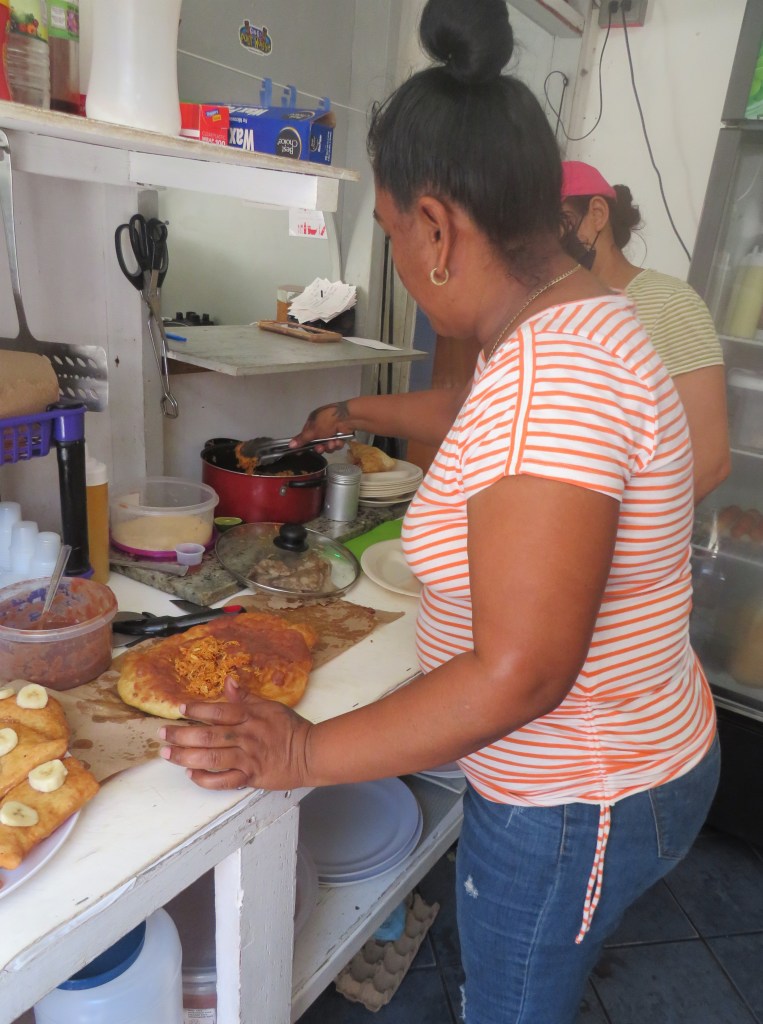 The Belize Food Tour is a walking tour that began at the central park in town. Melva was our tour guide. She was definitely the hostess with the mostest. She had the perfect personality for this tour. We went to seven different places that were small, local, family owned businesses that we might have over looked otherwise. Most of these places were so small that our group barely fit inside. They may have been small in size, but they were huge in great foods and hospitality. This is a win/win for everyone. It exposed people to small little local businesses that we might have missed AND it helps and supports the local businesses. Our group was Melva, Larry and I and 8 other people. We got to sample food at all our stops. Melva warned us from the beginning to pace ourselves because we would be sampling A LOT of really good food.