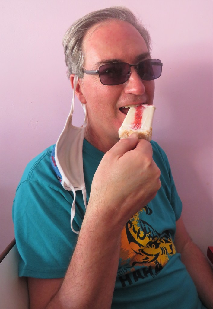It was a hot and sunny day and we were out walking around in the heat, so it was very cool and refreshing when we stopped in for some delicious homemade ice cream. We could either have ice cream or one of their ice cream sticks.