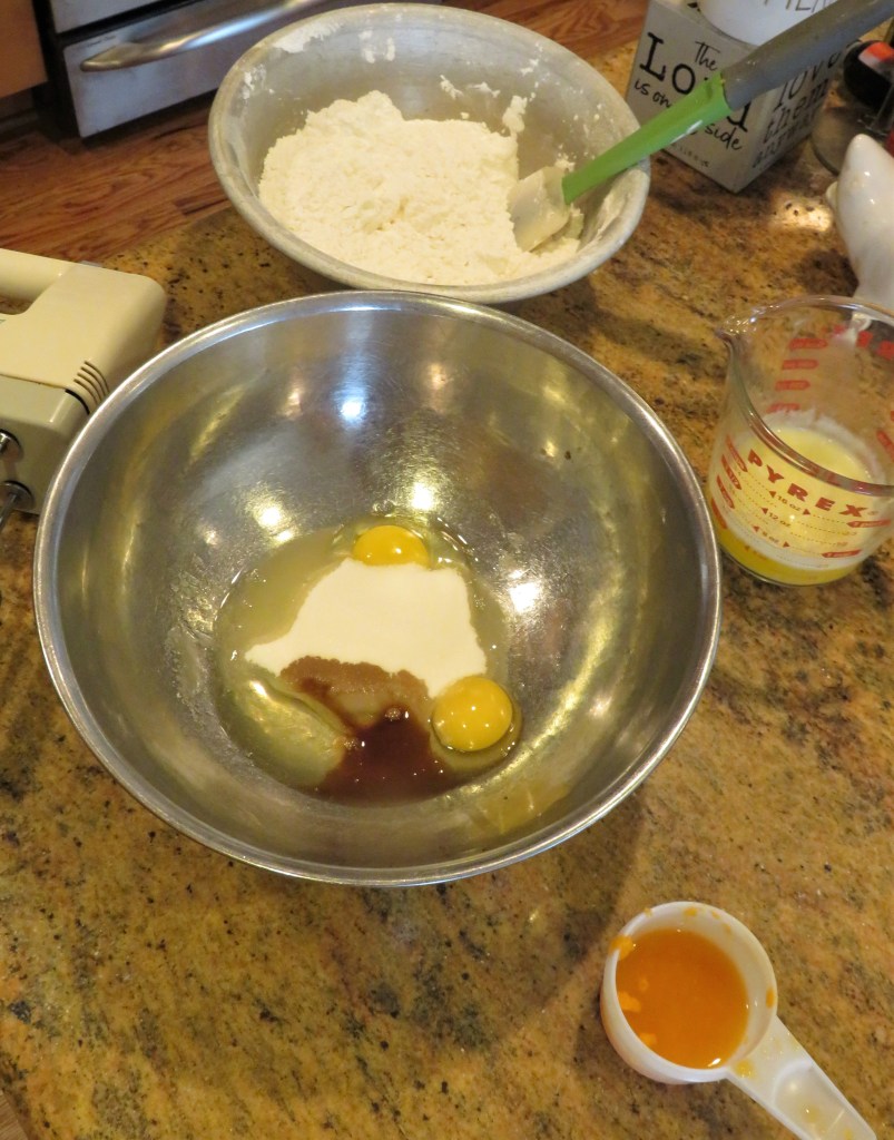 Combine the flour, salt and baking powder thoroughly and set aside.