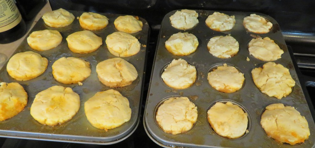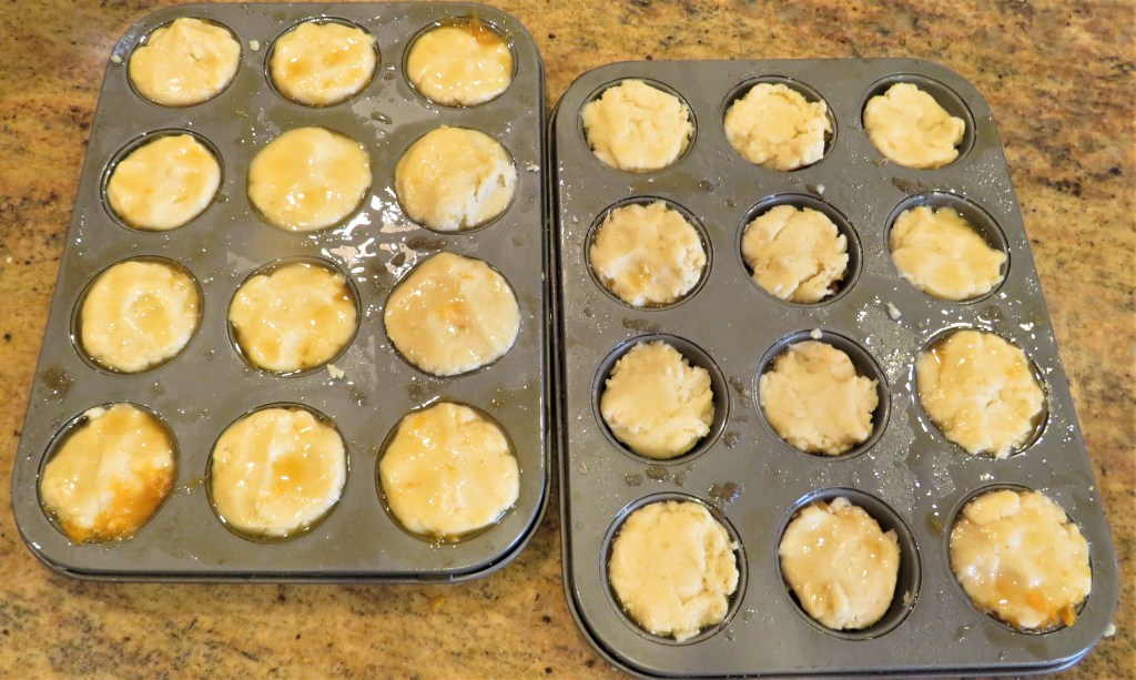 I made these in my mini muffin pans because I am trying to make them stretch as much as possible to feed a lot of people, but you can also use a regular cake pan too.