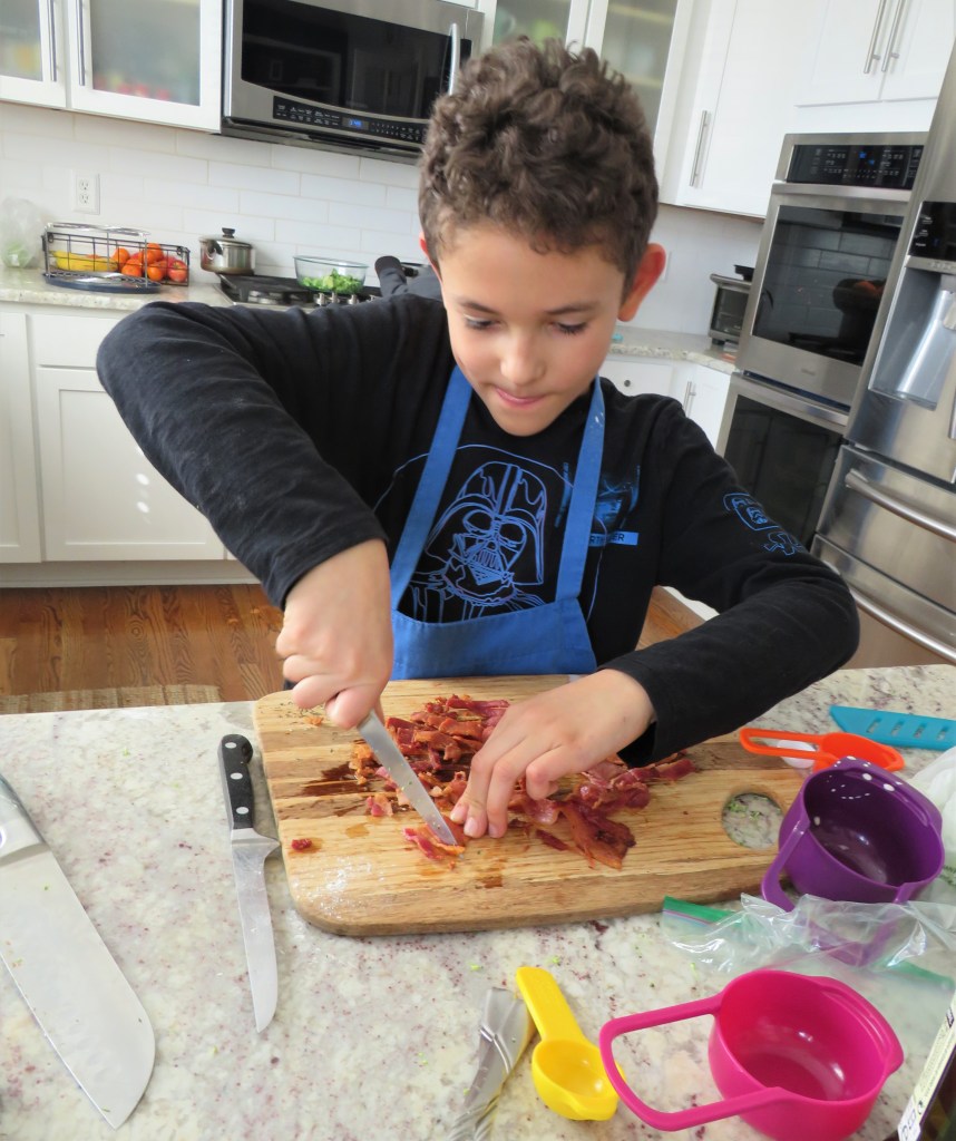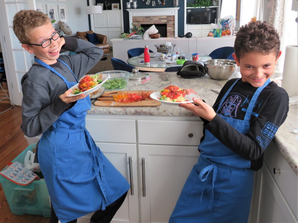 It was another fun day with my two mini sous chefs, Micah and Asher. We always have a lot of fun together. In fact, their mom said they look forward to all our cooking days, and our cooking classes are some of their favorite things to study. π We already have a couple of recipes in store for our next few sessions, but this time we made some loaded baked potatoes.