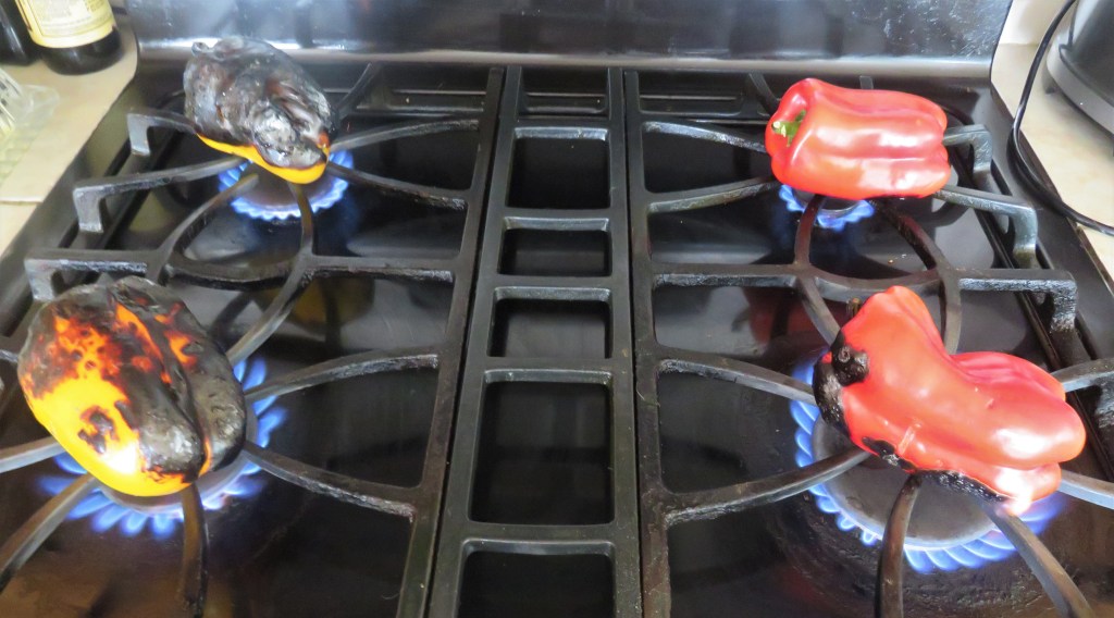4 roasted bell peppers – I used 2 red, 1 orange and 1 yellow, peeled and seeded