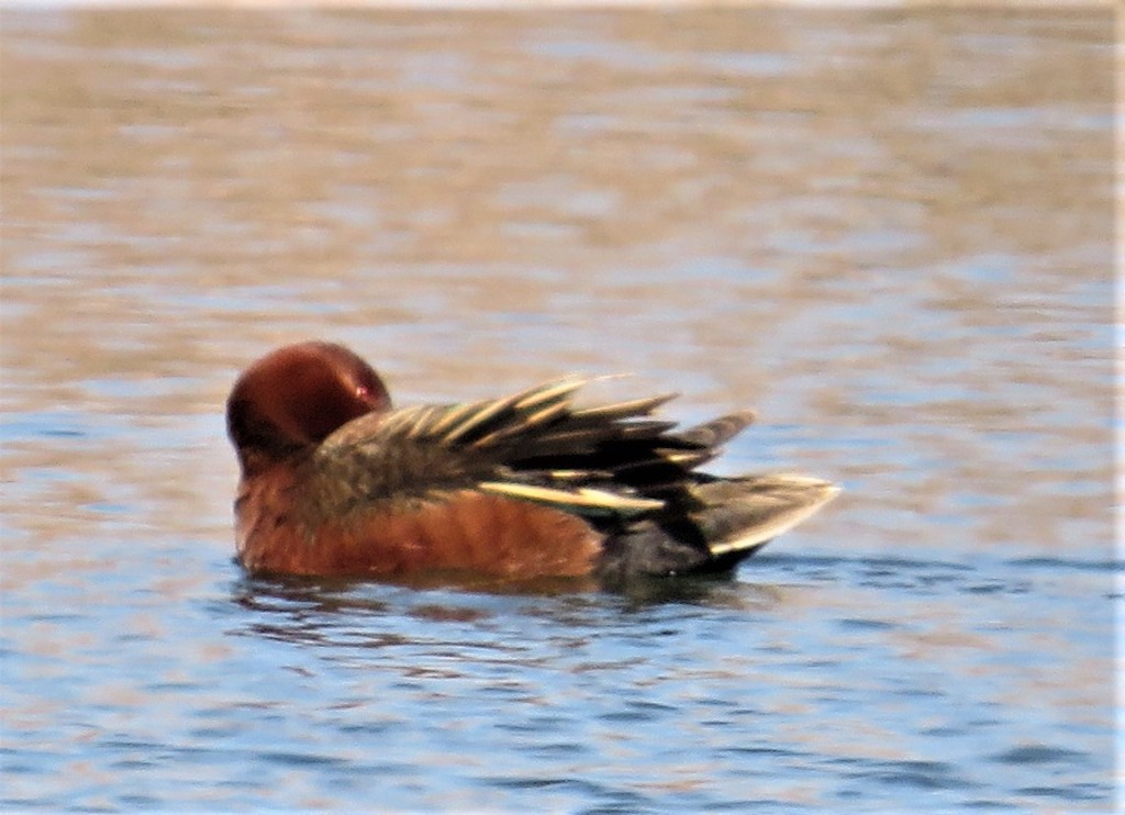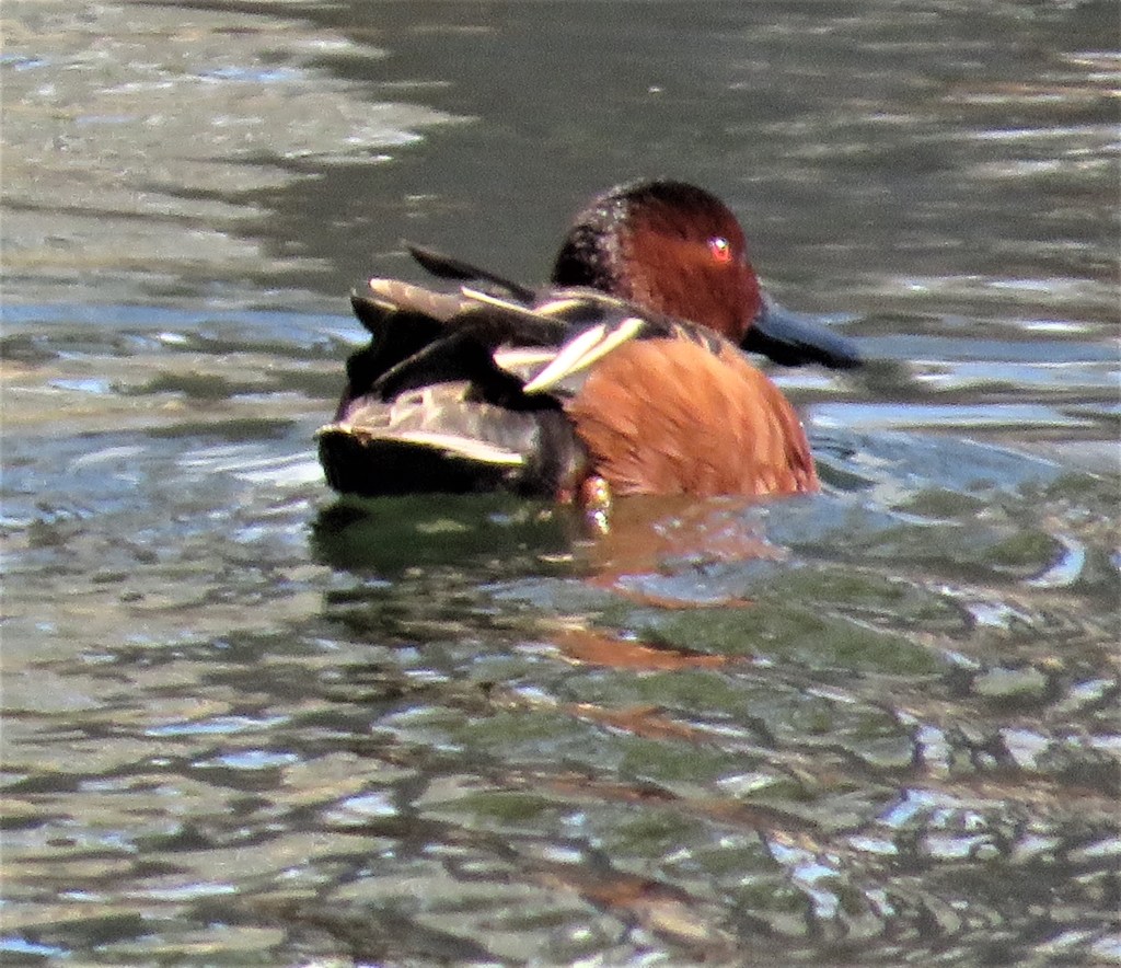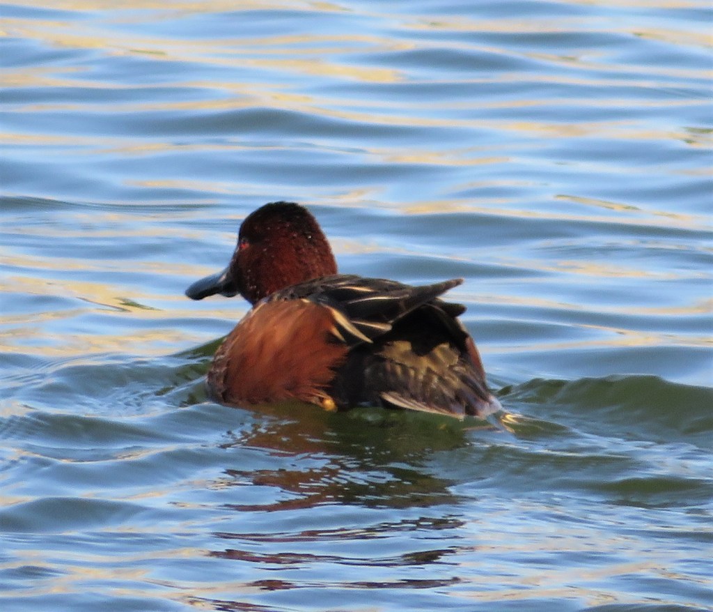 Another one of our new guests on the ponds is a Cinnamon Teal. Like so many of our other visitors, I have seen him before, just not that frequently. Now I have seen him a few days in a row, but he is pretty hard to capture with my camera. Every time I get him in my sights, and get the camera focused, he decides to dive underwater. I did manage to get a few good shots though before he decided to plunge again.