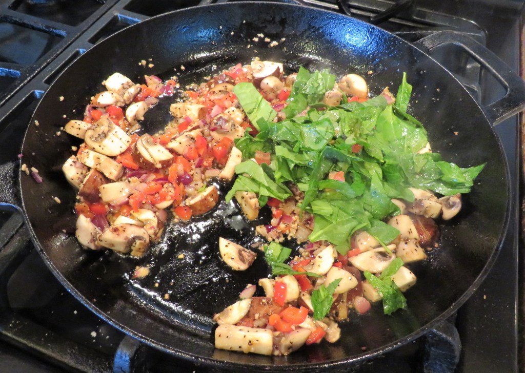 The spinach was next along with the seasonings, cooking for just a few minutes longer. For seasonings, I kept it simple, with just salt, pepper and lemon pepper.