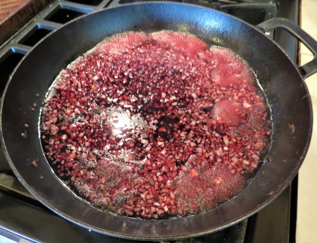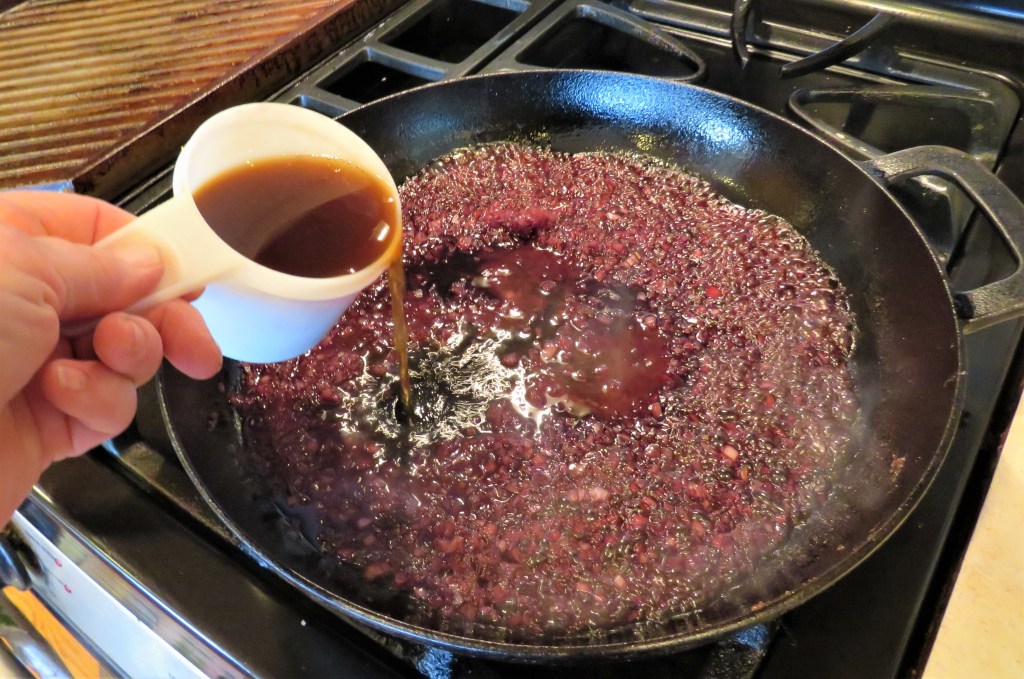 Once most of the liquid has evaporated, add the beef broth, and once again reduce it to about 1/3 of the liquid.