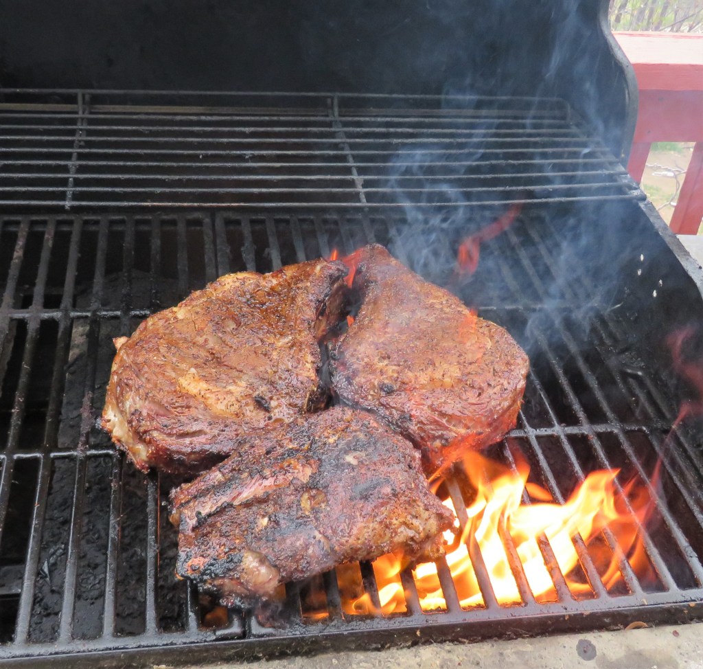 Larry has been itching to smoke another big batch of beef, and of course when we do that, we have to have friends over to help us enjoy the fruits of his labor. So we had a little casual get-together with our friends Eric and Shannon. Unfortunately though, I think the smoker has died. We inherited the smoker from one of Larry’s brothers when he bought a new one, and it was already old then, and we have had it for a few years. I think it smoked its last bit of meat though, and it is now time for Larry to buy a new one. It has lived a good long life. But when the smoker doesn’t work, put it on the grill. It’s always good to have a plan B.