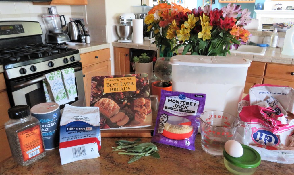The recipe called for Parmigiano cheese, but at the time I was making it, I didn’t think I had any. I did have Monterey Jack though, which worked just fine. And, of course AFTER my bread was made, I discovered I DID have Parmigiano cheese. Lots of it too. Anyway, my point is, use what what you have and try something different.