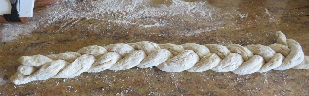 Then carefully braid the bread strands together.