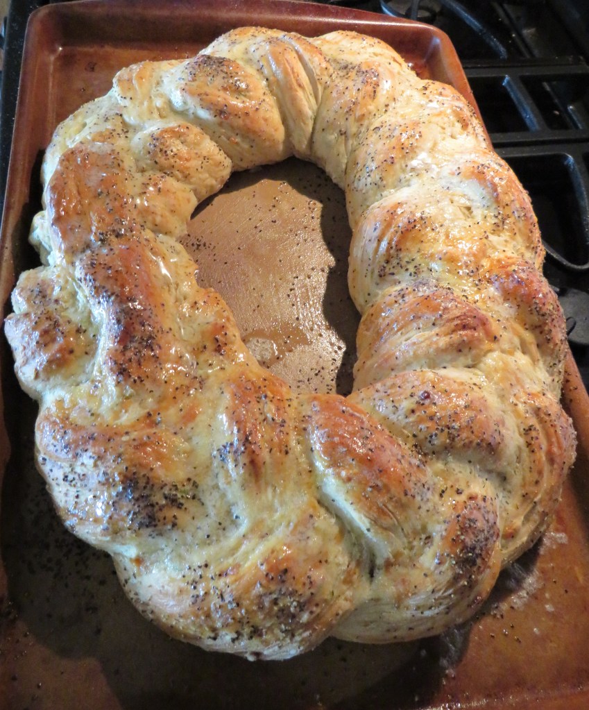 Bread is the food of life, and I certainly LOVE my breads. All kinds of breads. I could easily live on bread alone, if there was enough butter of course. Not only do I love eating breads, but a close second is making all different kinds of breads too. My latest bread making adventure came in the form of a cheesy, peppery wreath.