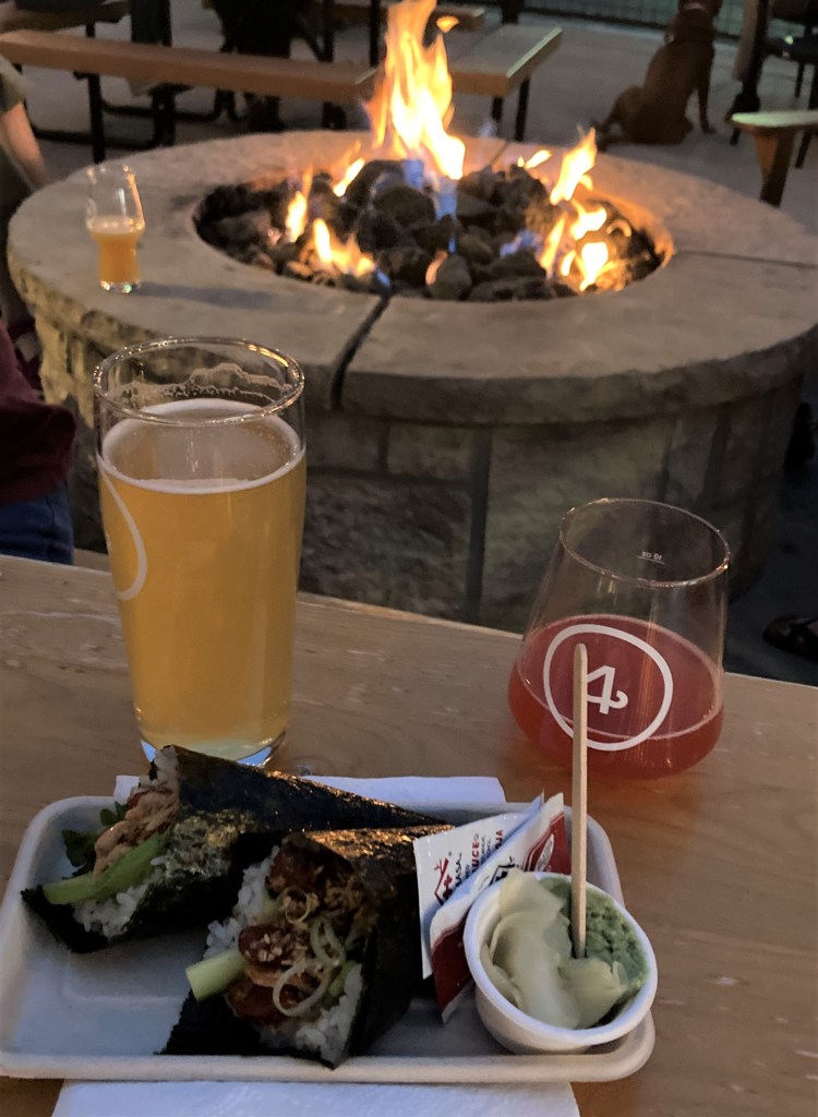We discovered Temaki Tornado by accident, when we went for a pint of local brew at Four Noses Brewery with our friends Mike and Lauren. None of us had really eaten, and Four Noses does not have a menu or a kitchen. Instead, they have a selection of different food trucks that come to them throughout the week, offering a wide variety of delicious types of from which to choose. Temaki Tornado was there the night we went. As it turned out, they were just about ready to pack it up for the evening too, and Larry and I just happened to be their last customers. We ordered some sushi rolls and enjoyed them by the firepit. The sushi rolls were very tasty and were a pleasant surprise. We have been very fortunate and have had some very good foods from food trucks all over. We just never know what we are going to find on our adventures.