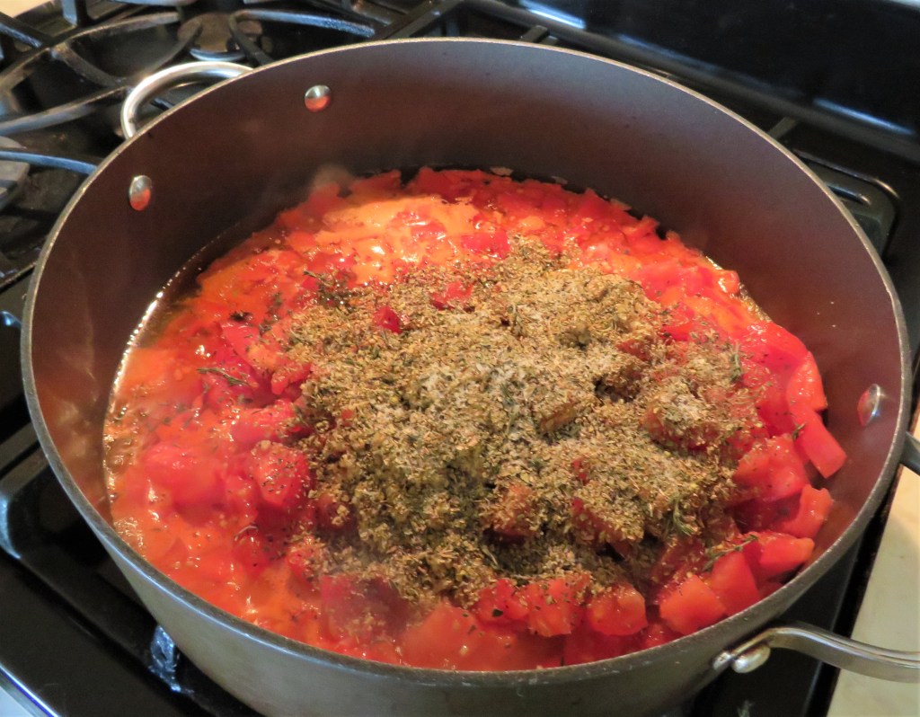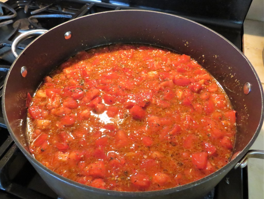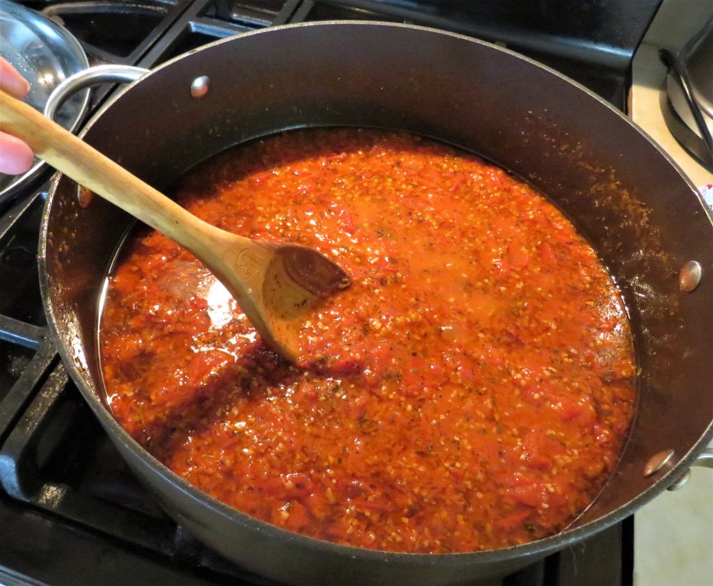 Often times, things with a tomato base taste better the next day, so after it was done I just put it in the fridge to set and brought it back out the next day, when I was ready to put everything together.