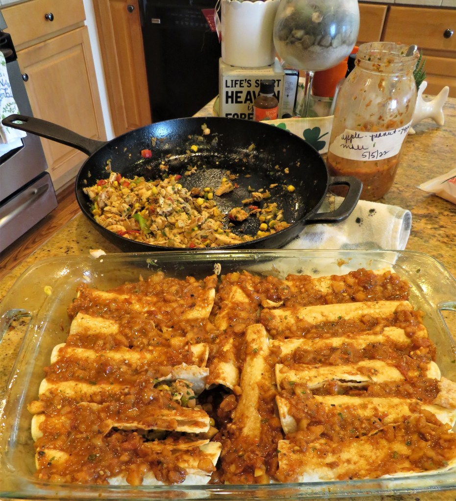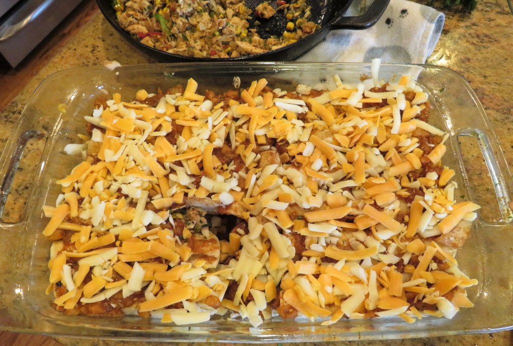 I do not have a picture of the finished enchiladas, since once again, I took them directly out of the oven and off we went. But I think you will get the general idea. I have confidence in all of you.