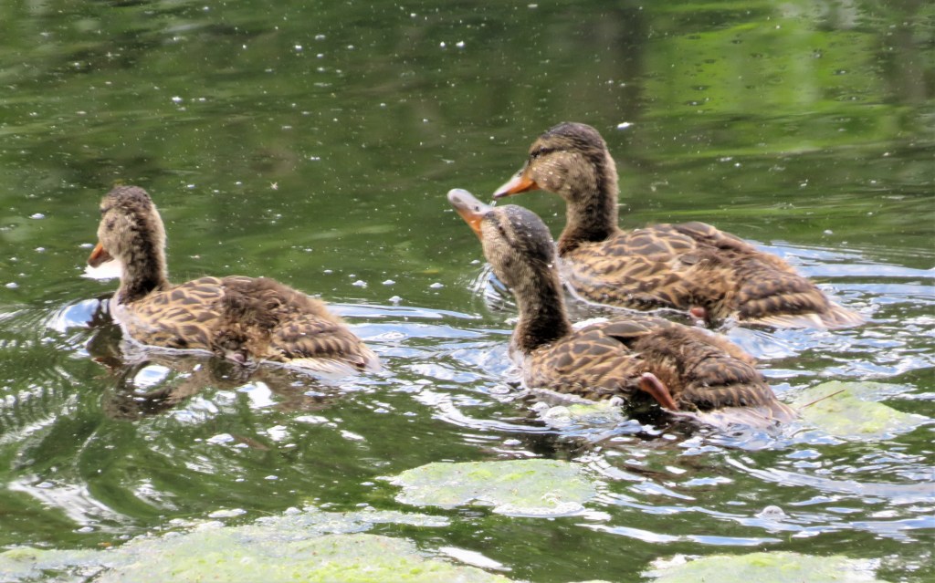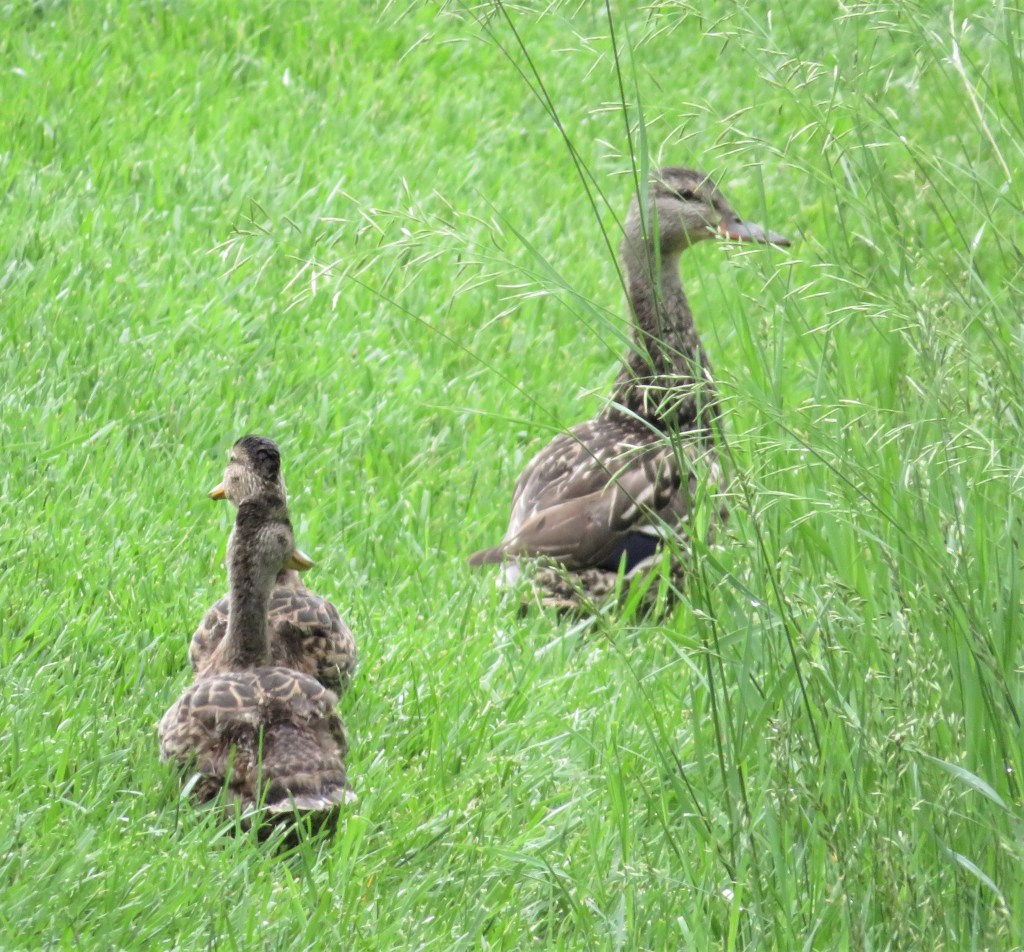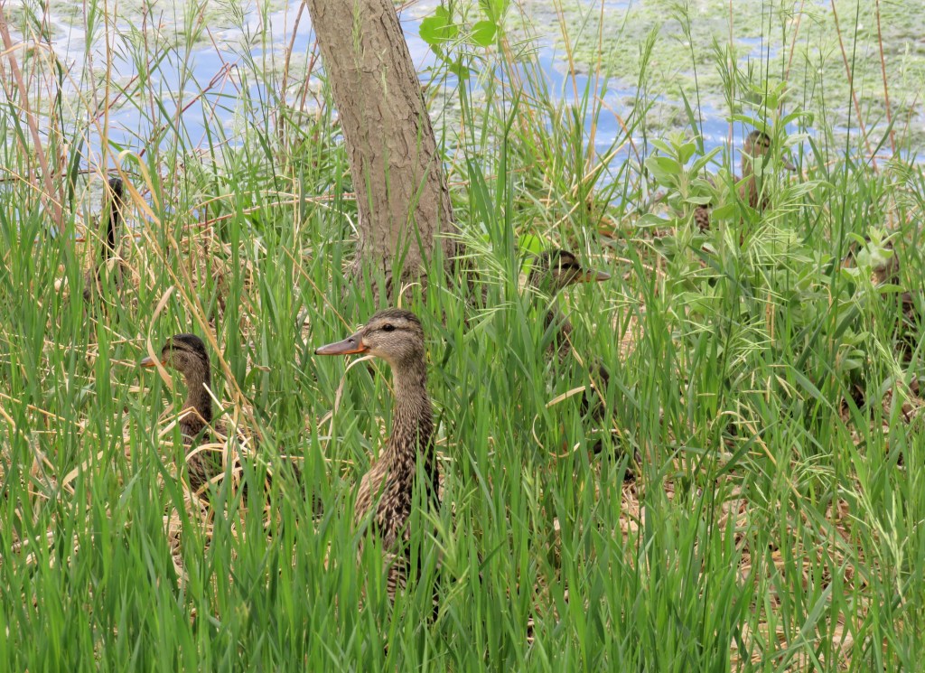 Teenagers are teenagers no matter what “skin” they are wearing. I saw the first batch of baby ducks, who are now teenagers, and they are every bit as curious and rebellious as human teenagers. They want to do their own thing while at the same time are still pretty close to mom. But they were really cute. They were off exploring the tall grasses before taking a dip in the pond, and then back to the grass.