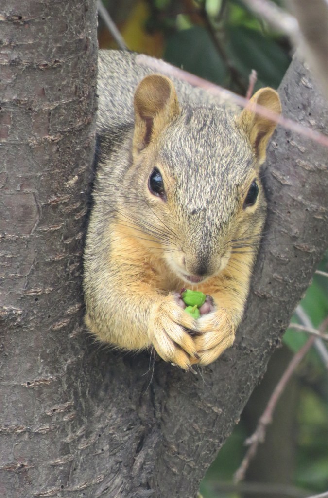 Yesterday was a perfect picture day. My camera was clicking a 100 clicks a minute. There was so much to see. And squirrels were everywhere. Some were getting very frisky too, in all ways. But there was this one squirrel, literally in a tree in my backyard, that was just posing for my camera and he was having so much fun. My camera loved him as much as he loved my camera. He was just the perfect model.