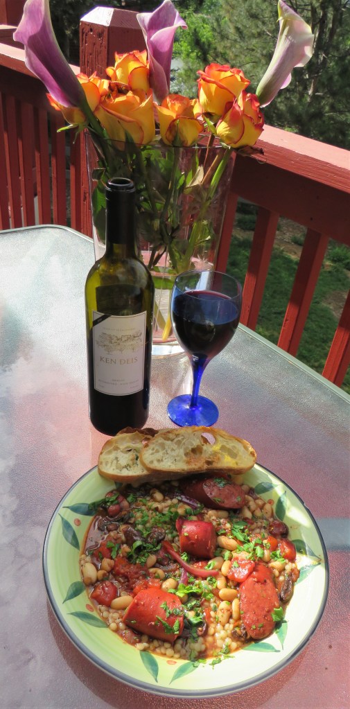 Good hearty peasant wine with a delicious hearty peasant meal. I love cannellini beans in it – so northern Italian!