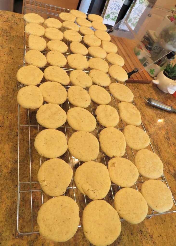 When the cookies are done, let them cool on the cookie sheet for about 5 minutes, then remove them and let them continue to cool on a baking rack.