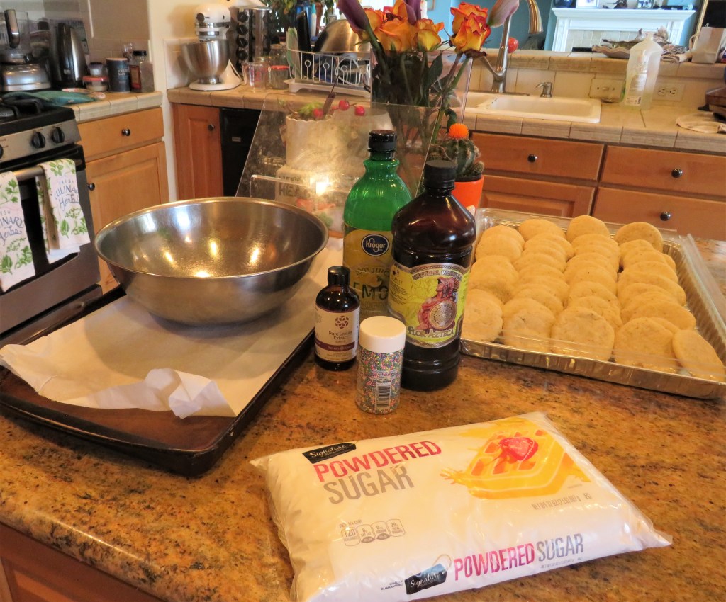 I doubled my recipe since I was making them for a lot of people. I also used some of my lilac sugar in the mix as well. Gail’s Lilac Sugar. Since I doubled the recipe, I used 1 cup of regular sugar and 1 cup of the lilac sugar.