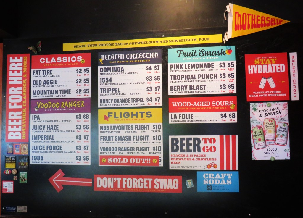 The New Belgium Brewery offers a wide range of beers and IPAs from which to choose. And for us non-beer drinkers, they also have some delicious sodas and sparkling drinks as well. Mike, and Lauren tried some of their beers, while Larry had a sparkling drink and I enjoyed an all natural black cherry soda.