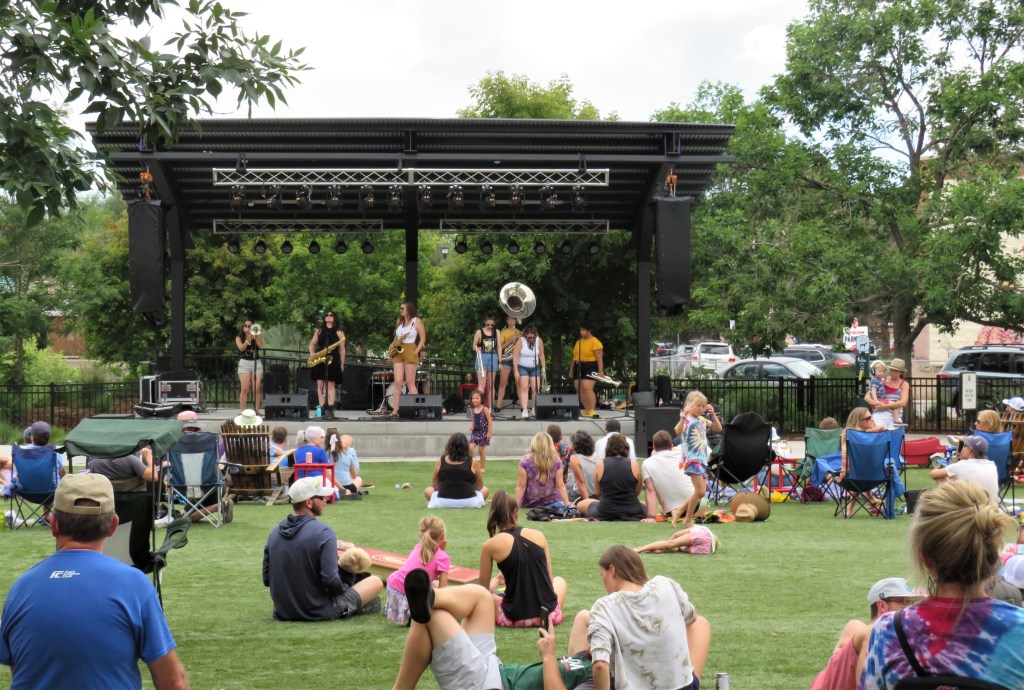 Another fun aspect of the New Belgium Brewery is that it is designed for entertainment. There was a large park area and a stage where we enjoyed the music of not one, but two brass bands, while sipping on our cool liquid refreshments. There were also a few food trucks scattered about the property as well, for our culinary enjoyment too.