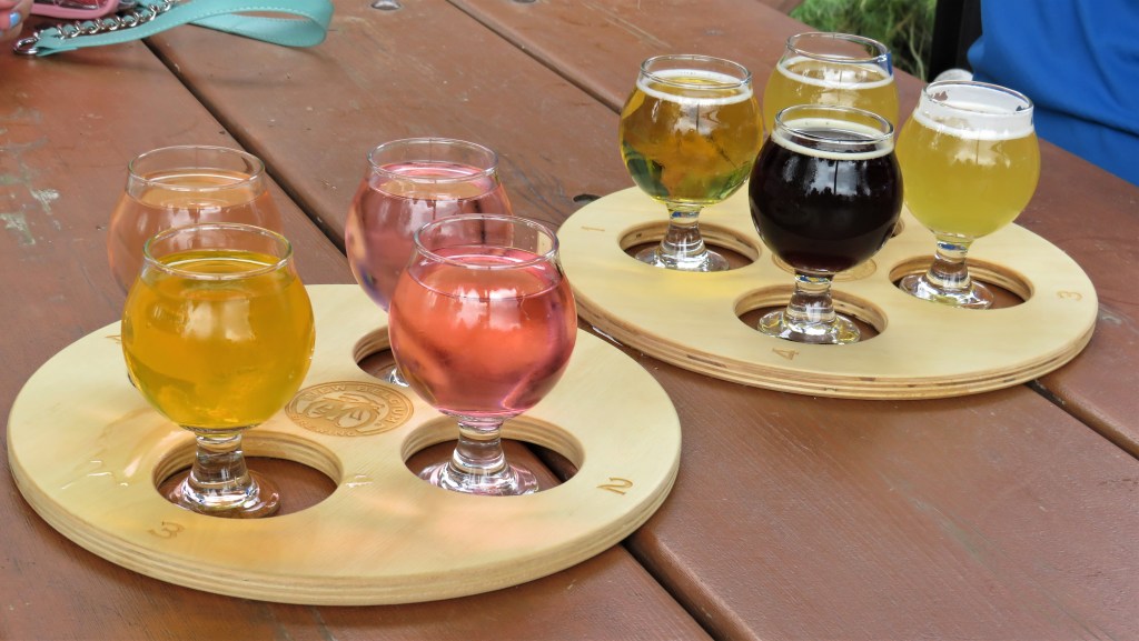 There was a couple sitting next to us outside in the pavilion, who was nice enough to let me photograph their sampler flights as well. As you can see, their is a wide variety of liquid refreshments.
