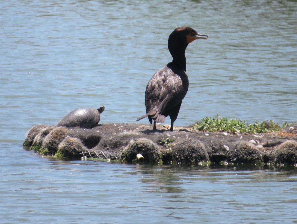 After awhile, the turtle left and it was just the cormorant on his own private island. He was loving every minute of it.