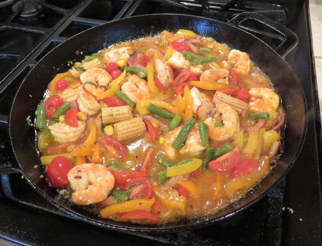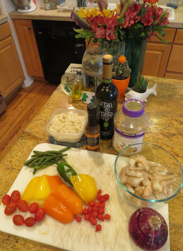 The other day, I wasn’t intentionally trying to make a Peruvian dish, but it just kind of happened that way. I was doing what just comes naturally to me, and throwing in bits of this and that while cooking dinner. The next thing I knew, I had a created a very tasty Peruvian dish with shrimp, or at least that’s my story and I’m sticking with it. πŸ™‚