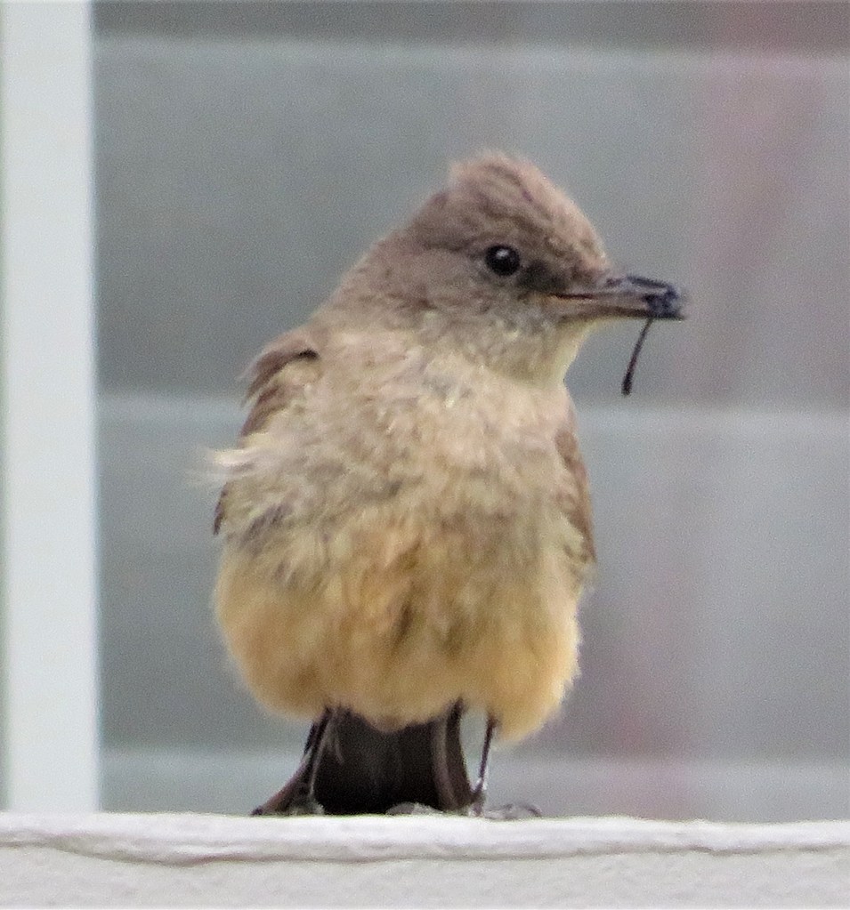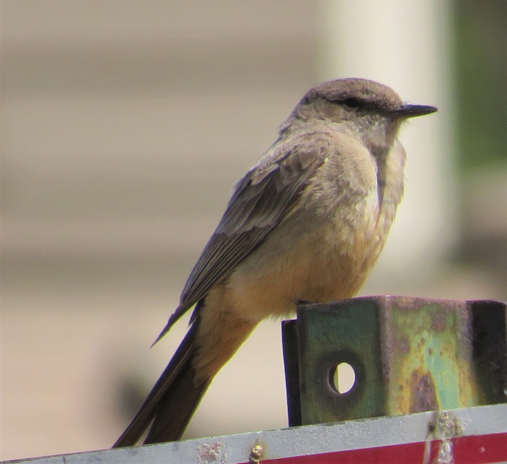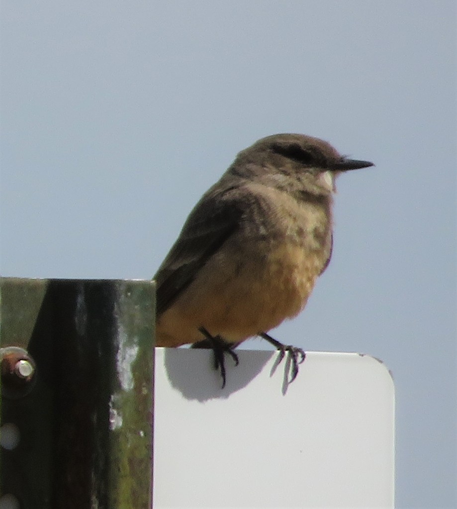 We have lots of these little Say’s Phoebes around here, especially from March- October. They are the most popular of three types of Phoebes we have. They are small birds but they are very distinguishable little birds too. They like to sing a pretty little tune that sounds a lot like sdweeeee. I hear them singing all the time.