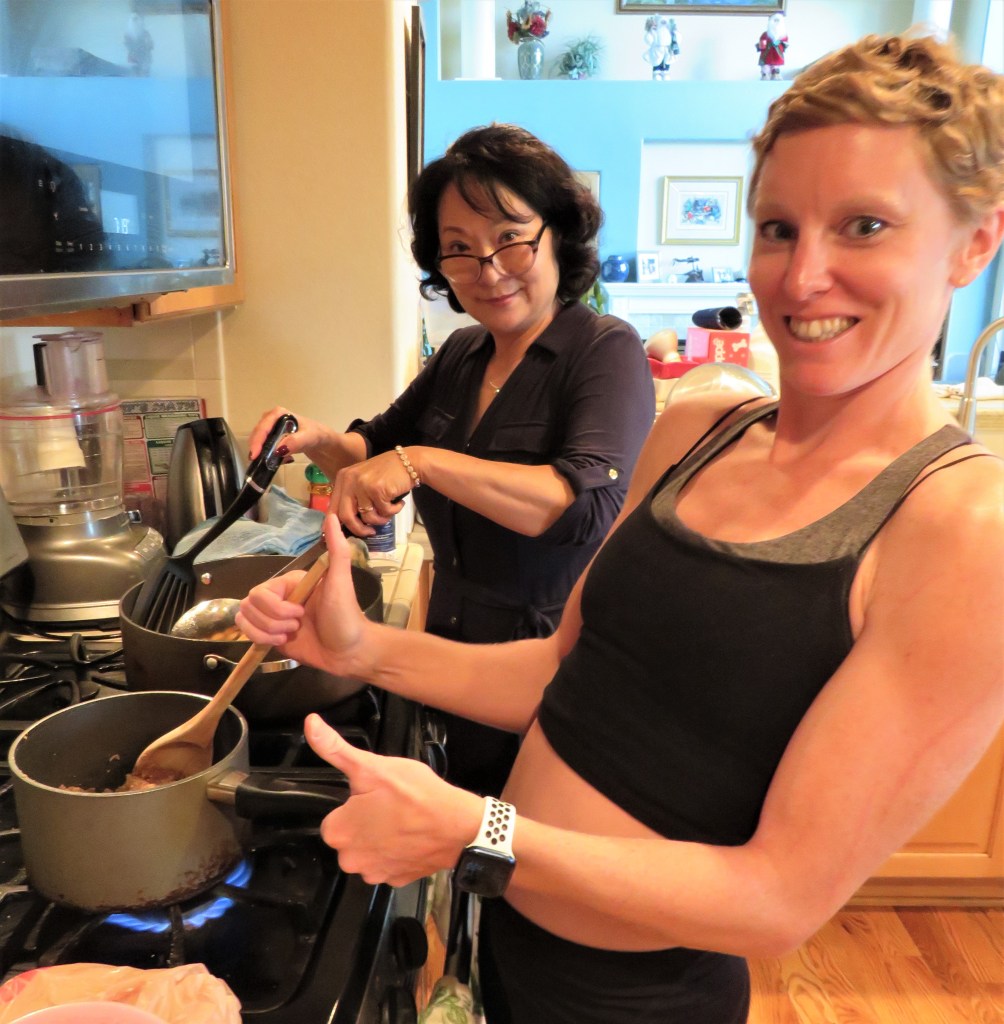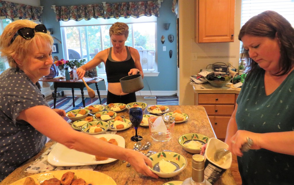 Peggy, Elizabeth and Amy are busy plating up the picarones and topping them with the panela sauce. They were oh so good too.