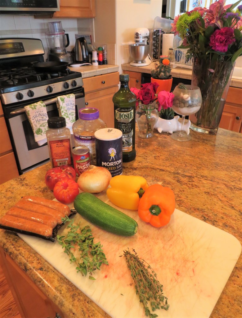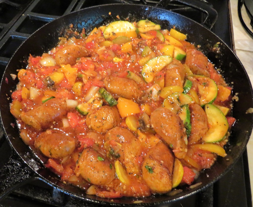 Spetsofai is a traditional Greek styled “stir-fry” made of sausage and peppers. Just like with any good dish that has been aroundfor a long time, there are many different versions. Originally it came from the province of Thessaly, which lies between Macedonia and Attiki. This is a traditional rustic one-pan kind of dish.