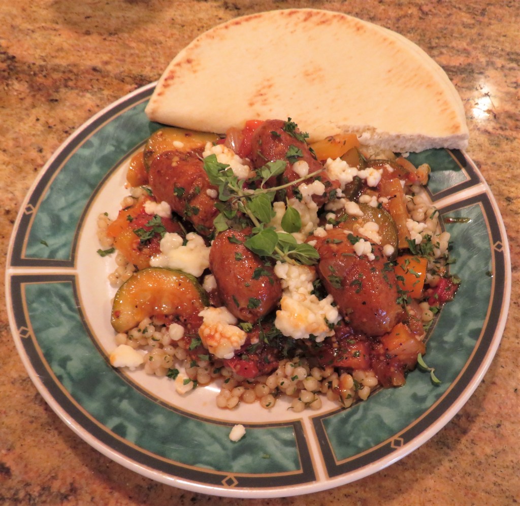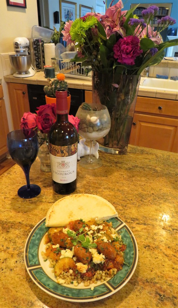 Once again, I was introduced to this dish by one of bloggers, foodzesty at https://foodzesty.com/. Of course I did what I always do, and I personalized it, making it in my own way. I served it over couscous with some warmed pita bread and a rich ruby red Malbec on the side. It was delicious!