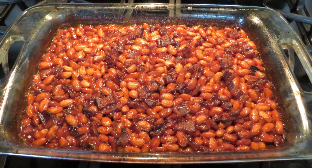 Baked beans have been part of the American diet long before America was even a country. It wasn’t even a twinkle in our founding fathers’ eyes when the Native American tribes, particularly the Iroquois, Narragansett, Penobscot and other eastern tribes were perfecting the art of baking beans. Baked beans were adopted by the British Colonials in the early 17th century, and have been an American favorite ever since. The old, traditional recipse from the indigenous peoples aren’t that much different from today’s version, except we usually use bacon or pork instead of bear or bear fat. Their method involved taking soaked native or β€œnavy” beans, mixing them with bear fat (yes, bear fat) and maple syrup, then slow cooking them in earthen, or deer-skin pots hung over a fire.
