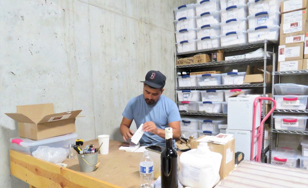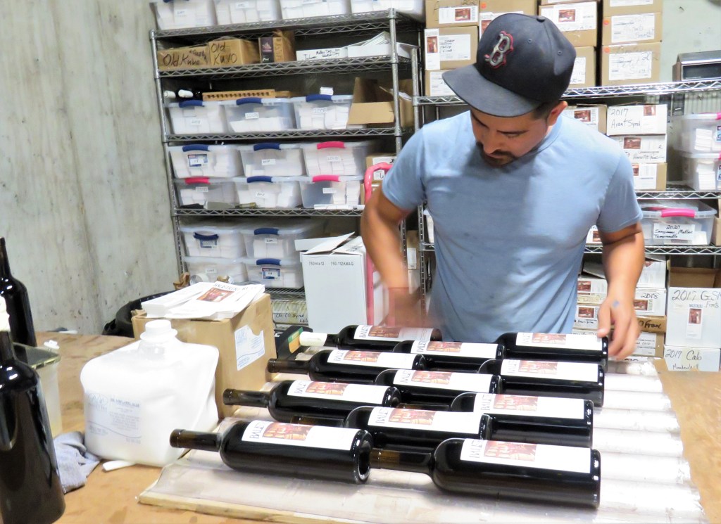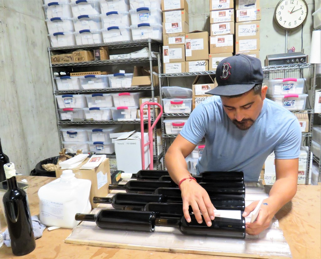 Don is getting the labels ready to place on the bottles. He is lightning fast and everything is done to perfection.