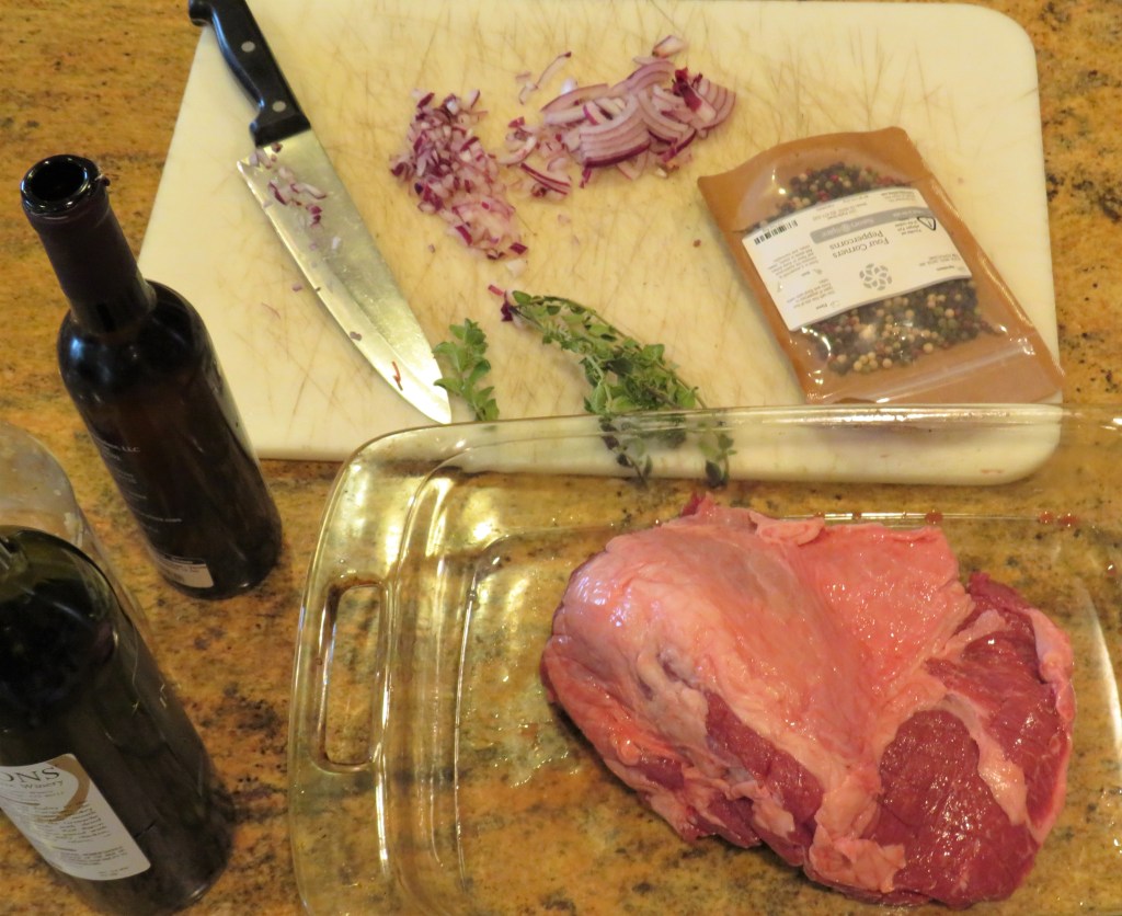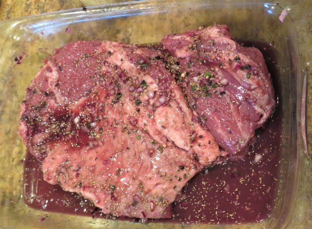 On the way home, we stopped at Costco and picked up a lamb roast, and once we got home, I immediately started marinating it. I made an orange, red wine and pepper marinade for it.