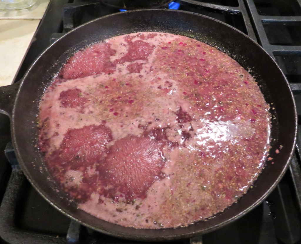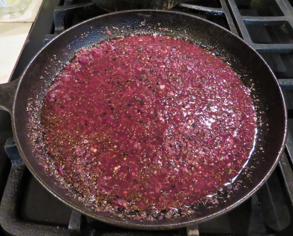 Once the lamb was on the grill, I reused the sauce to make a wine reduction sauce to top the lamb.