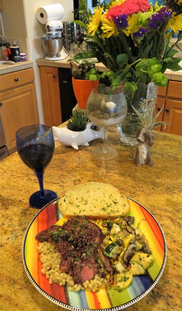 And voila! Dinner was served in hardly anytime at all. We all loved the lamb and the sauce. Larry was pleasantly surprised when he got home from work. He was expecting leftovers. It was a perfect ending to a perfect day.
