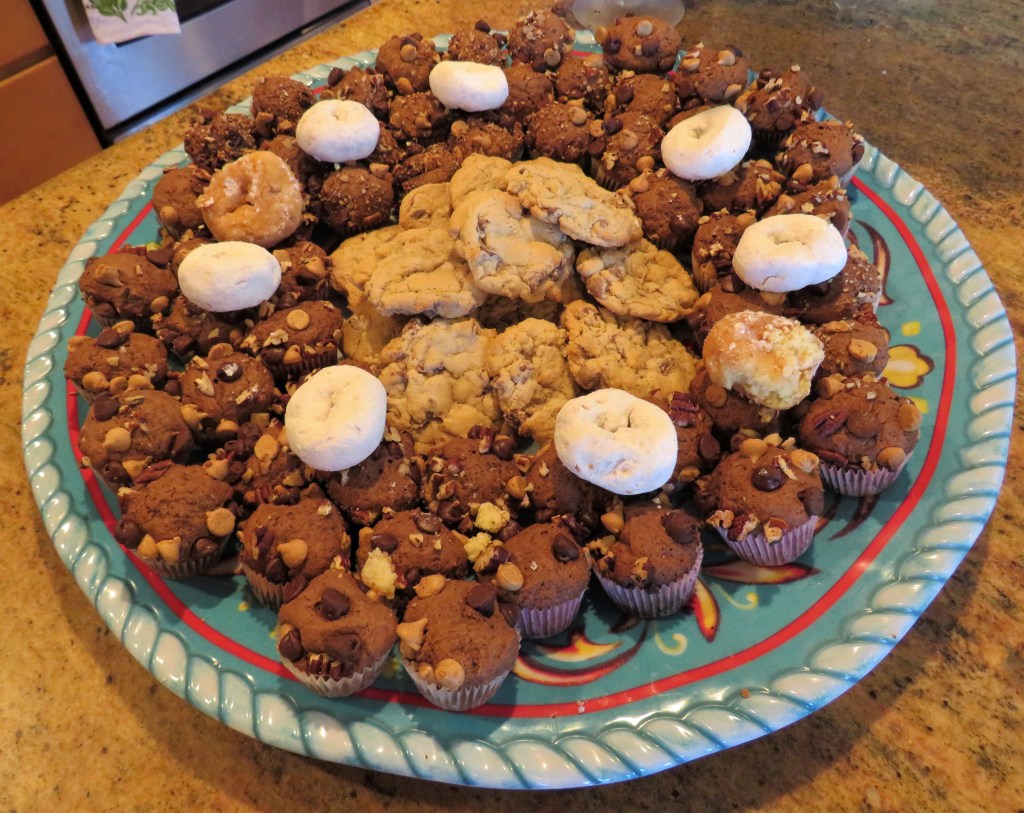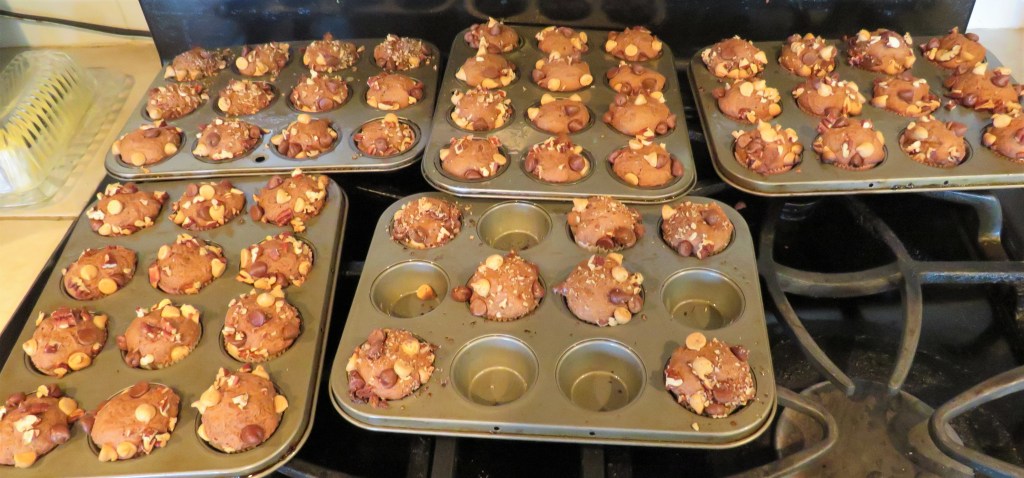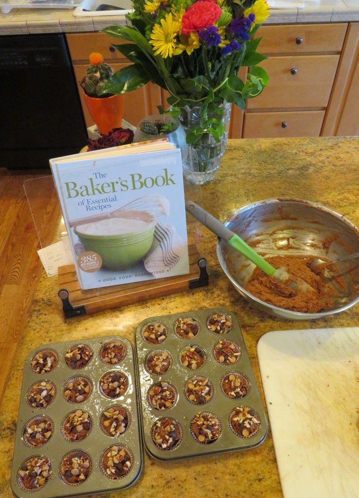 My latest muffins were chocolate muffins topped with a little “toffee”. I kind of made this recipe up based on a picture I saw in the grocery store.